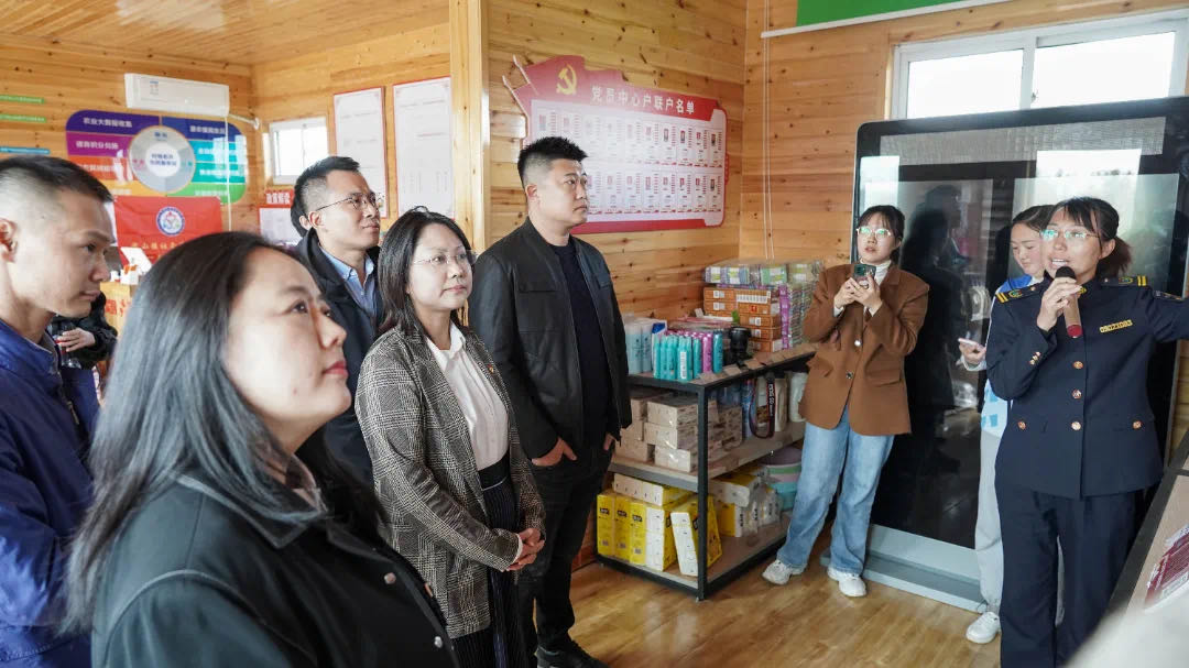 活动现场,委员们来到大陡崖参观宝山镇党支部领办德育银行项目、蓝莓种植示范中心、“寻宝山居”民宿旅游项目,与宝山镇乡村好青年代表共同座谈,学习宝山镇乡村振兴、科技创新发展经验成果,为后期持续开展“电商助农”类服务活动打好基础。