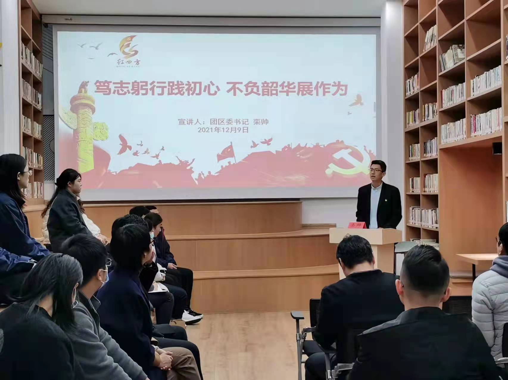为全面深入学习领会党的十九届六中全会精神,扎实推进学习宣传贯彻工作,12月9日,团区委书记、市北区委宣讲团成员栾帅到中泰信大厦共享职工之家开展主题为“笃志躬行践初心,不负韶华展作为”的十九届六中全会精神宣讲。