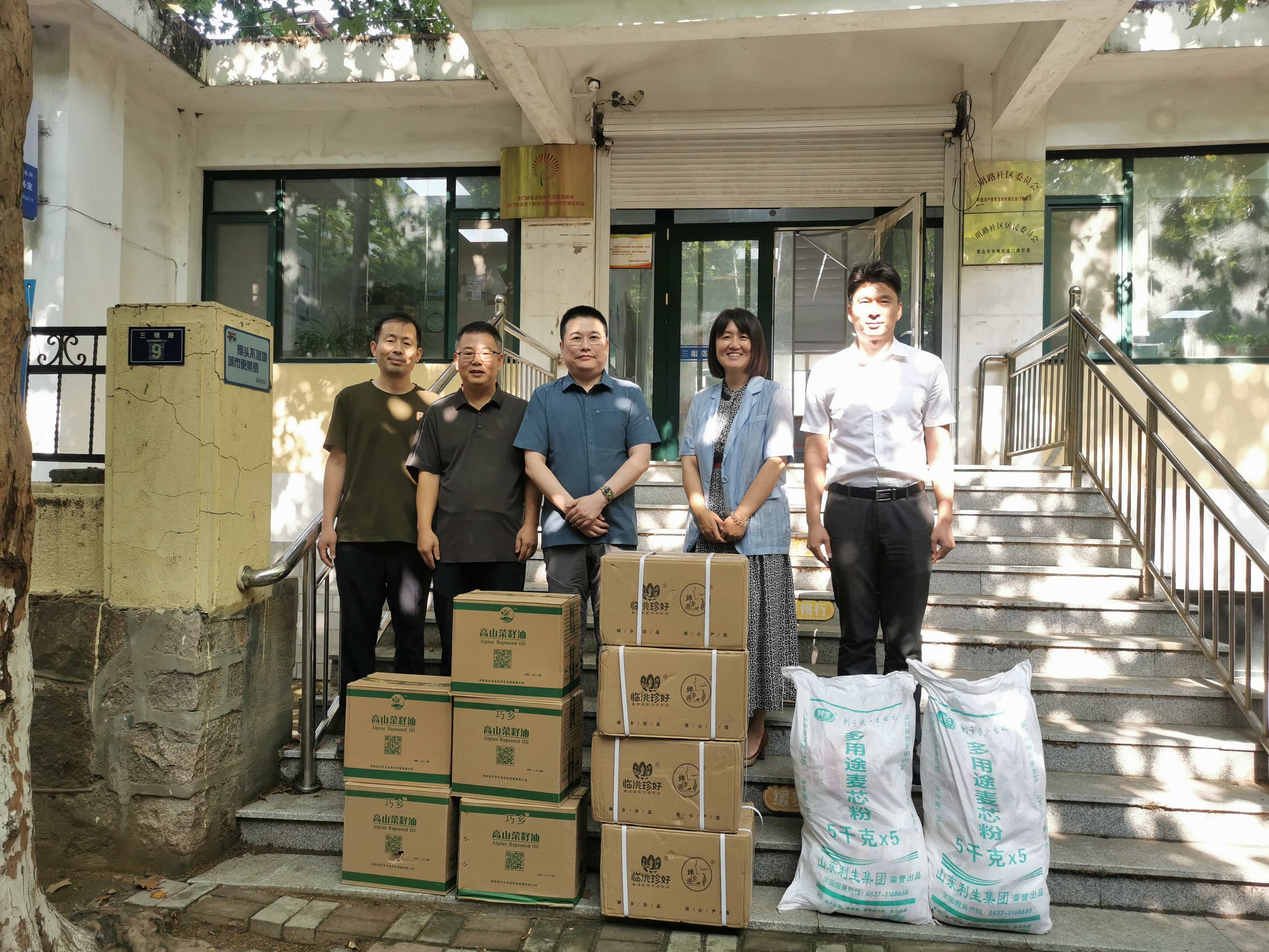 9月27日上午,中泰信文化教育产业园一行来到市南区金门路街道,送上节日的慰问物资。